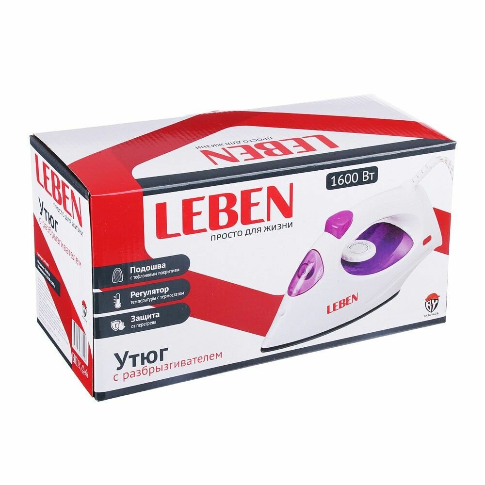 Утюг LEBEN 249-002 1600 Вт, белый/фиолетовый