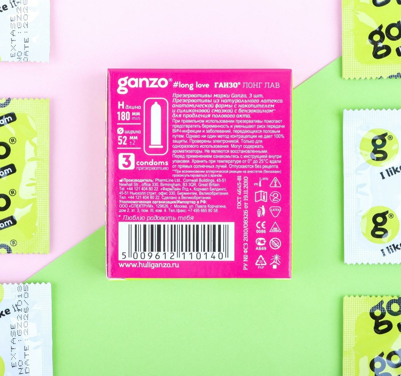 Ganzo Презервативы «Ganzo» Long Love, с анестетиком, 3 шт.