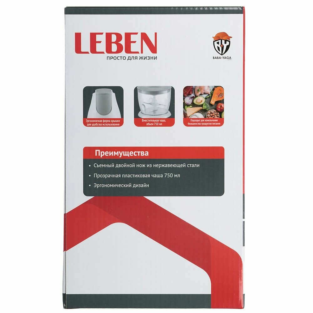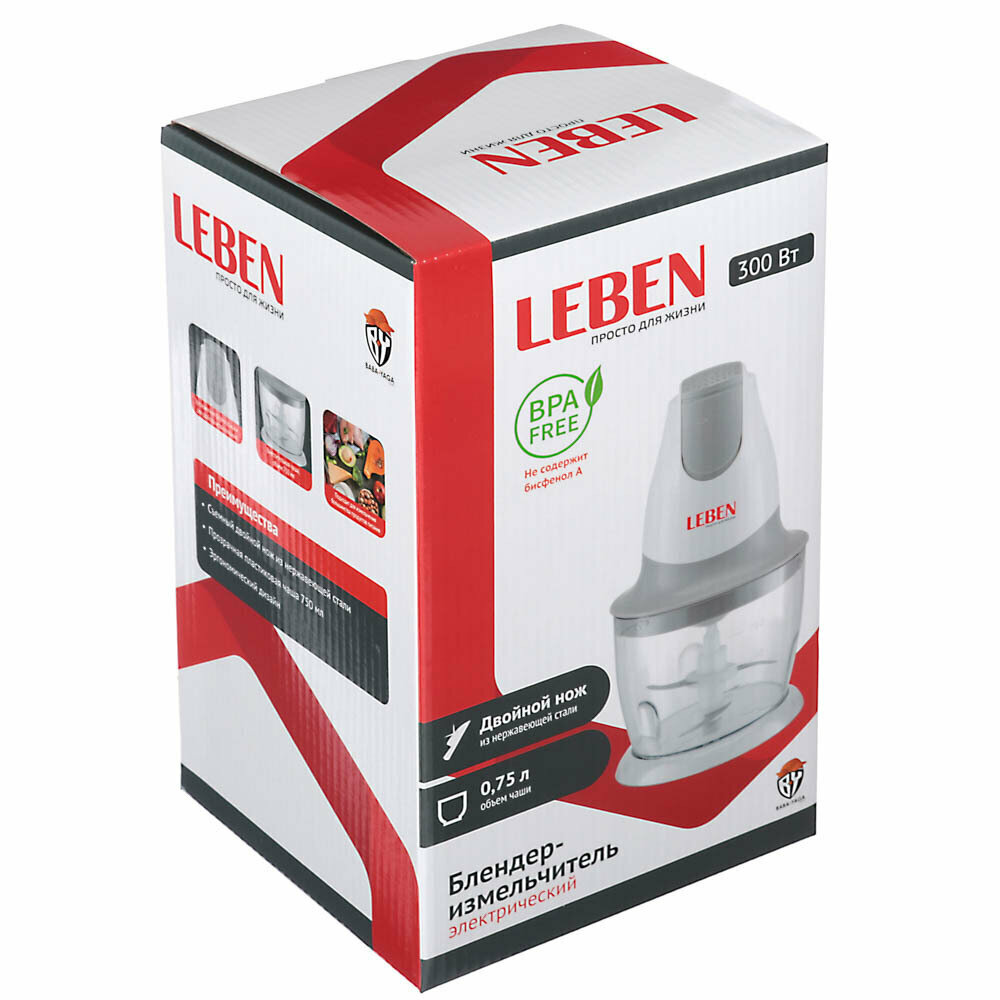 Блендер-измельчитель LEBEN электрический 300 Вт, съемный двойной нож, прозрачная чаша 750 мл