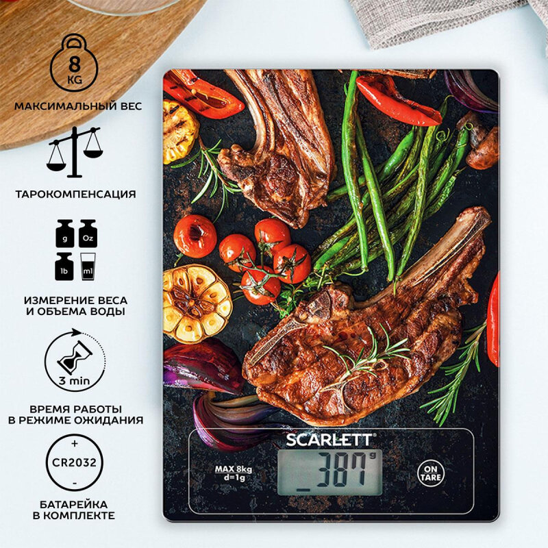 Сразу понравился внешний вид - и в дизайн кухни вписались, и рисунок аппетитный. Еще удобно, что есть возможность сбросить вес тары, чтобы сразу определить исключительно вес продукта.