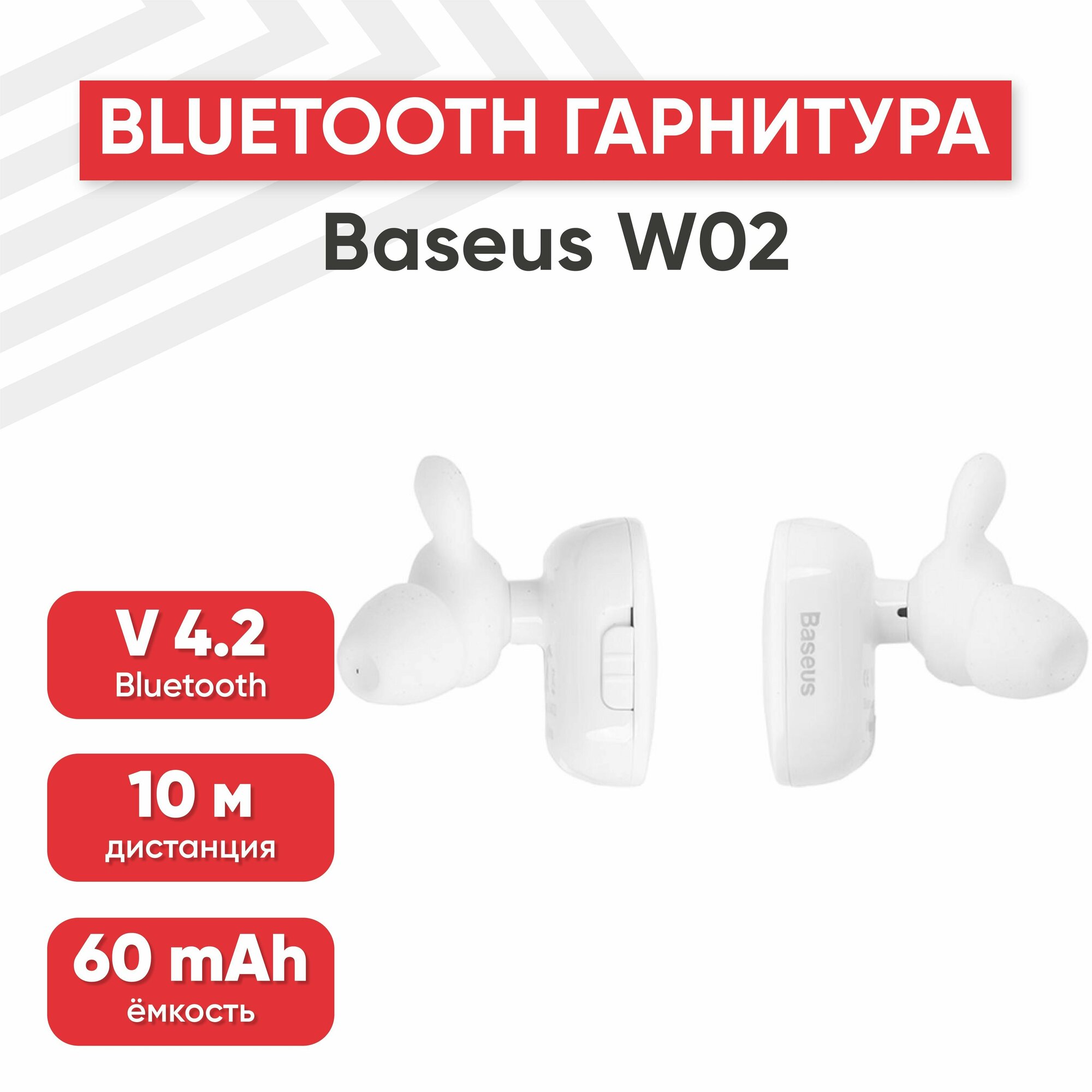 Беспроводные Наушники Baseus Encok W02 TWS - белые (NGW02-02)
