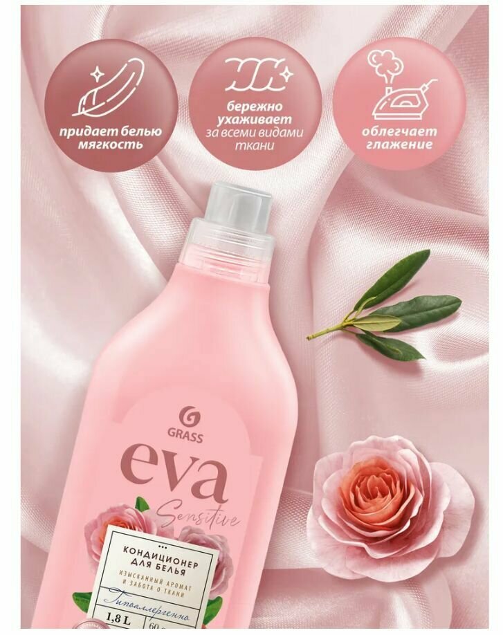 Кондиционер-ополаскиватель для белья Grass EVA Sensitive, концентрированный, 1.8 л