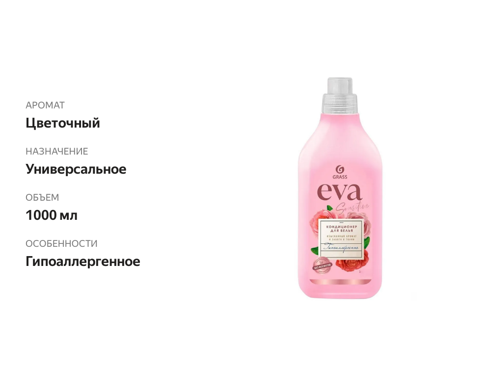 Купить Кондиционер для белья Grass "EVA" sensitive концентрированный (флакон 1 л)