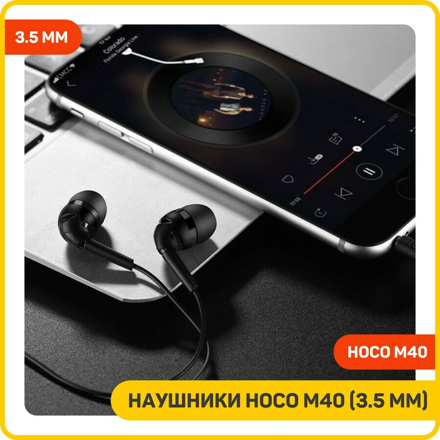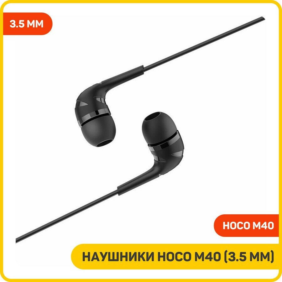 Наушники Hoco M40, проводные, вакуумные, микрофон, Jack 3.5 мм, 1.2 м, черные