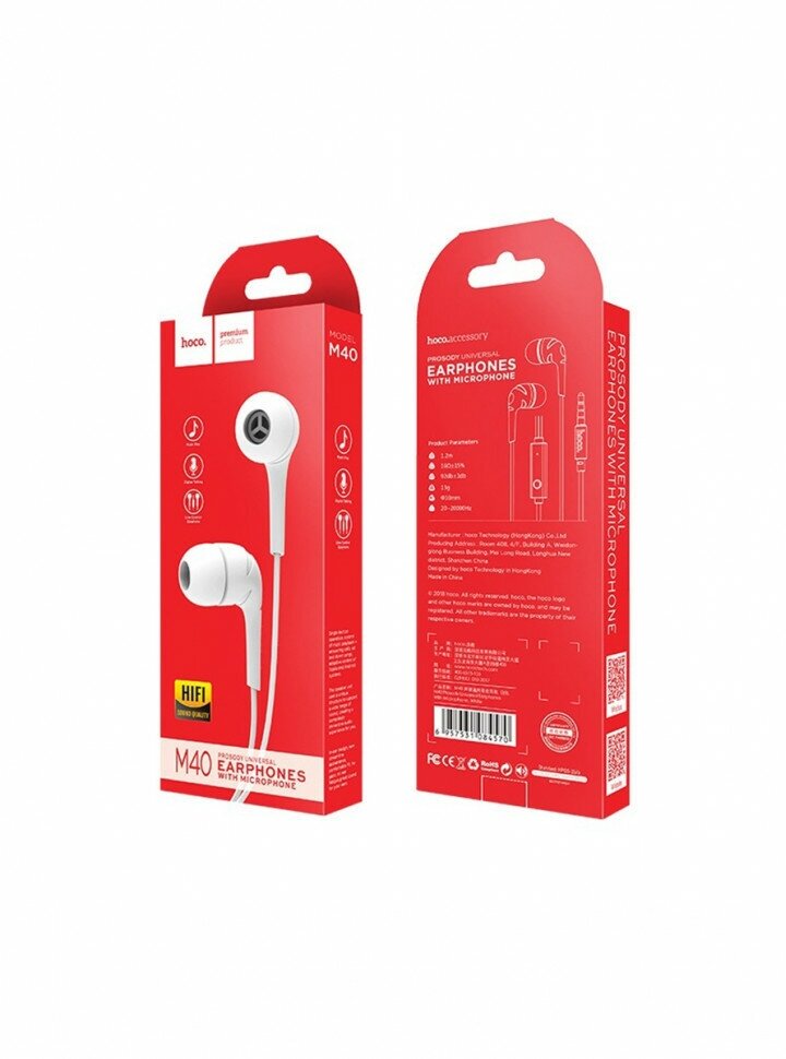 Наушники вкладыши с микрофоном Hoco M40 Prosody White мобильная гарнитура, белые