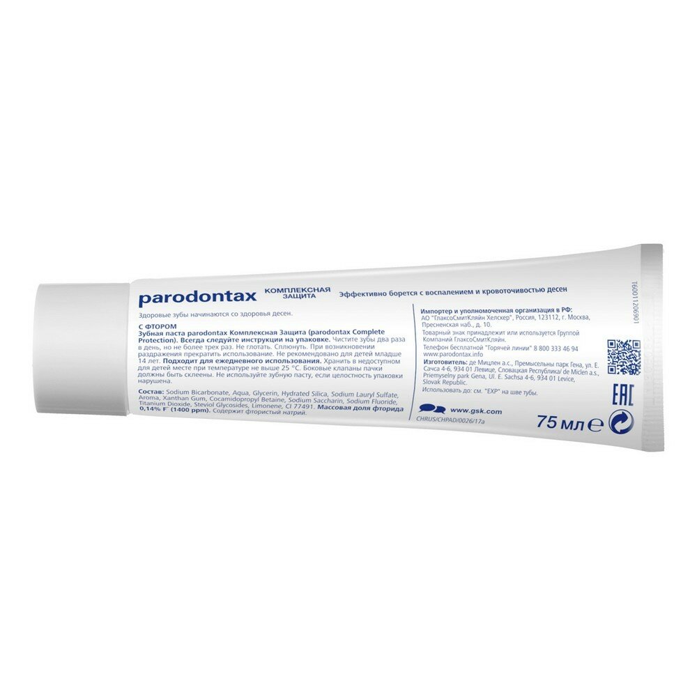Зубная паста parodontax Комплексная Защита, от воспаления и кровоточивости десен, для укрепления зубов и поддержания здоровья десен, с фтором, 75 мл