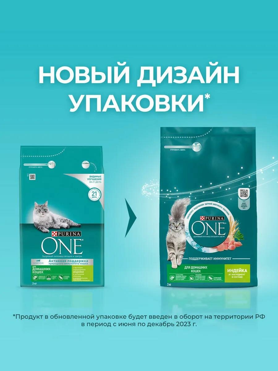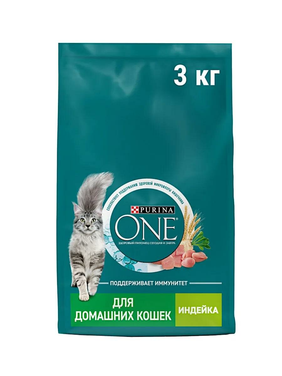 Сухой корм Purina ONE для взрослых кошек, живущих в домашних условиях, с высоким содержанием индейки и злаками, 3 кг