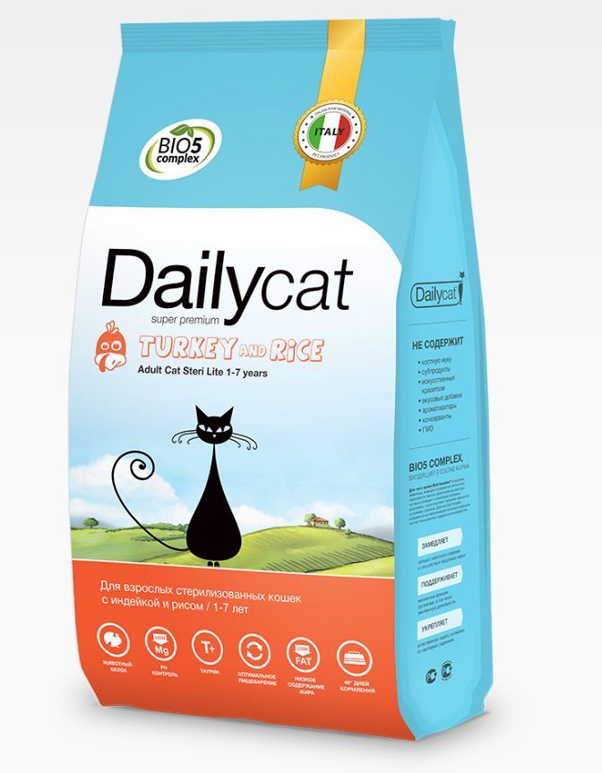 DailyCat Adult Steri lite Turkey and Rice - Сухой корм для стерилизованных кошек с индейкой и рисом dy660053 1,5 кг