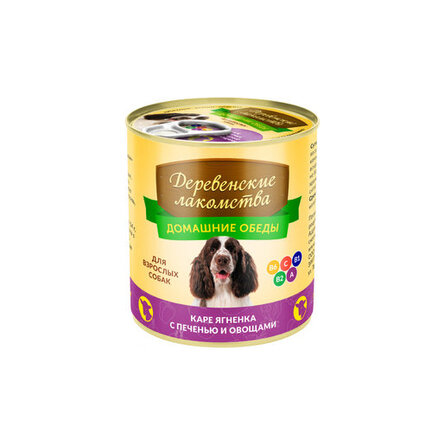 Корм для собак деревенские лакомства Домашние обеды Каре ягненка, печень, овощи конс.240г (упаковка - 4 шт)