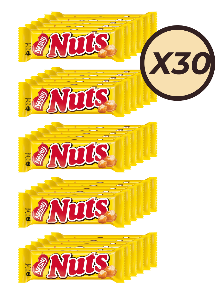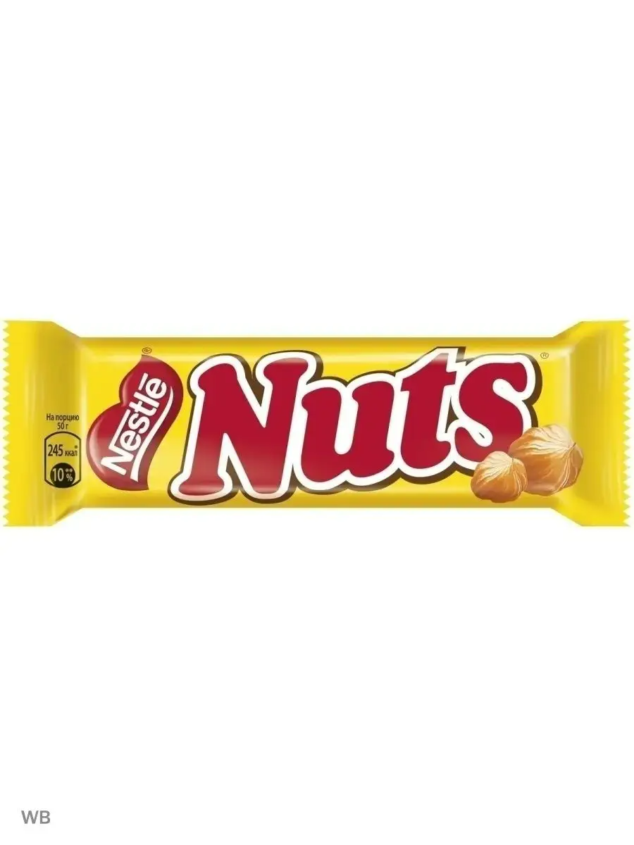Шоколадный батончик Nuts, молочный шоколад, 50г, 30 шт. в упаковке