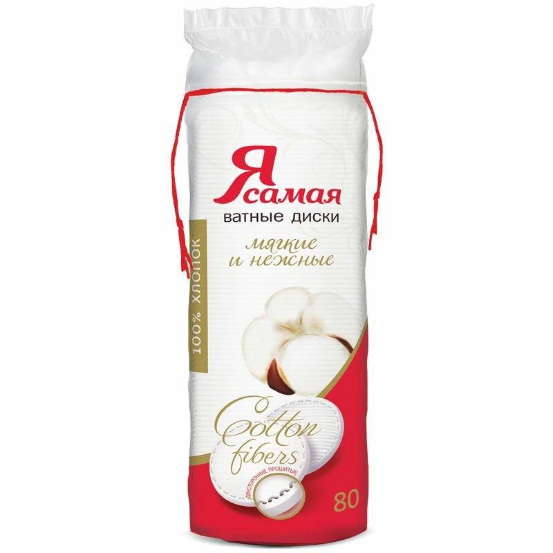 Я Самая Косметические ватные диски "Я Самая" прошитые, 80 шт.