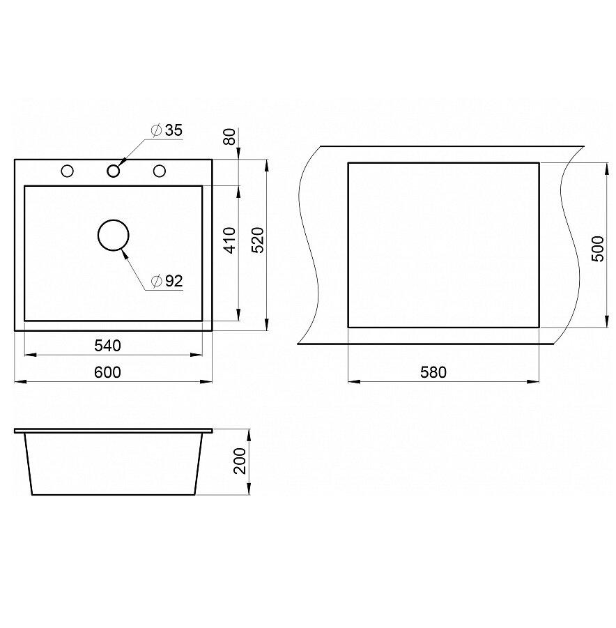 | Минусы: | 1. Пишут на сайте, что можно установить в шкаф шириной 600 мм. На мой взгляд, это не получится: вырез в столешнице будет по самые боковые стенки - слишком слабая конструкция выходит. Шкаф 800 мм шириной - самое то для этой мойки.