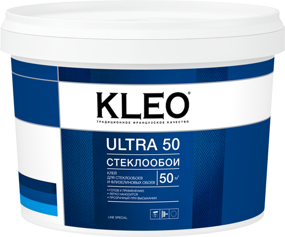 Клей обойный "KLEO" ULTRA 50 для стеклообоев готовый (50м2, ведро 10кг)
