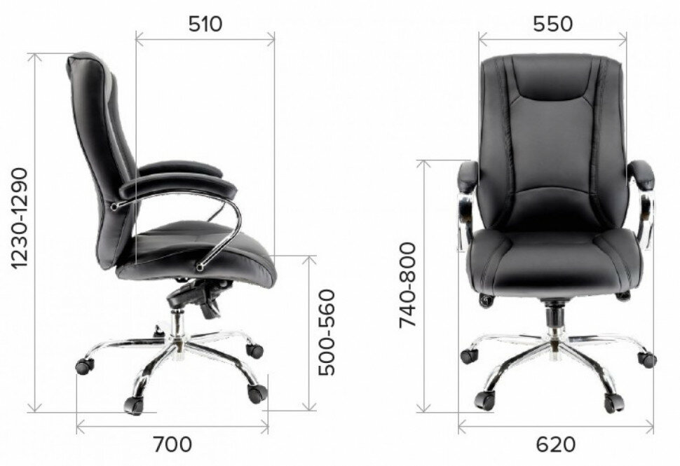 Офисное кресло Everprof King M чёрное (экокожа, хром, ролики, Мультиблок)