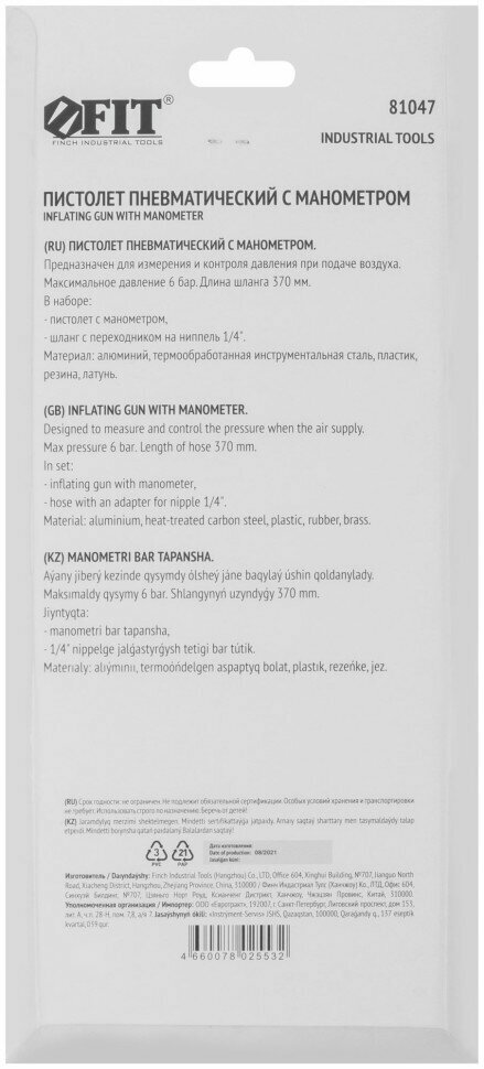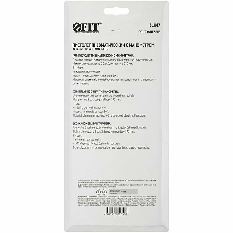 Пистолет с манометром, быстросъемное соединение FIT 81047 интересное: