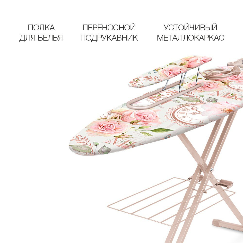 Доска гладильная 122х40 см, Доброе утро, подставка для утюга, гладильный рукав, встроенная розетка, полка для белья, Nika, Н9/14, разноцветная