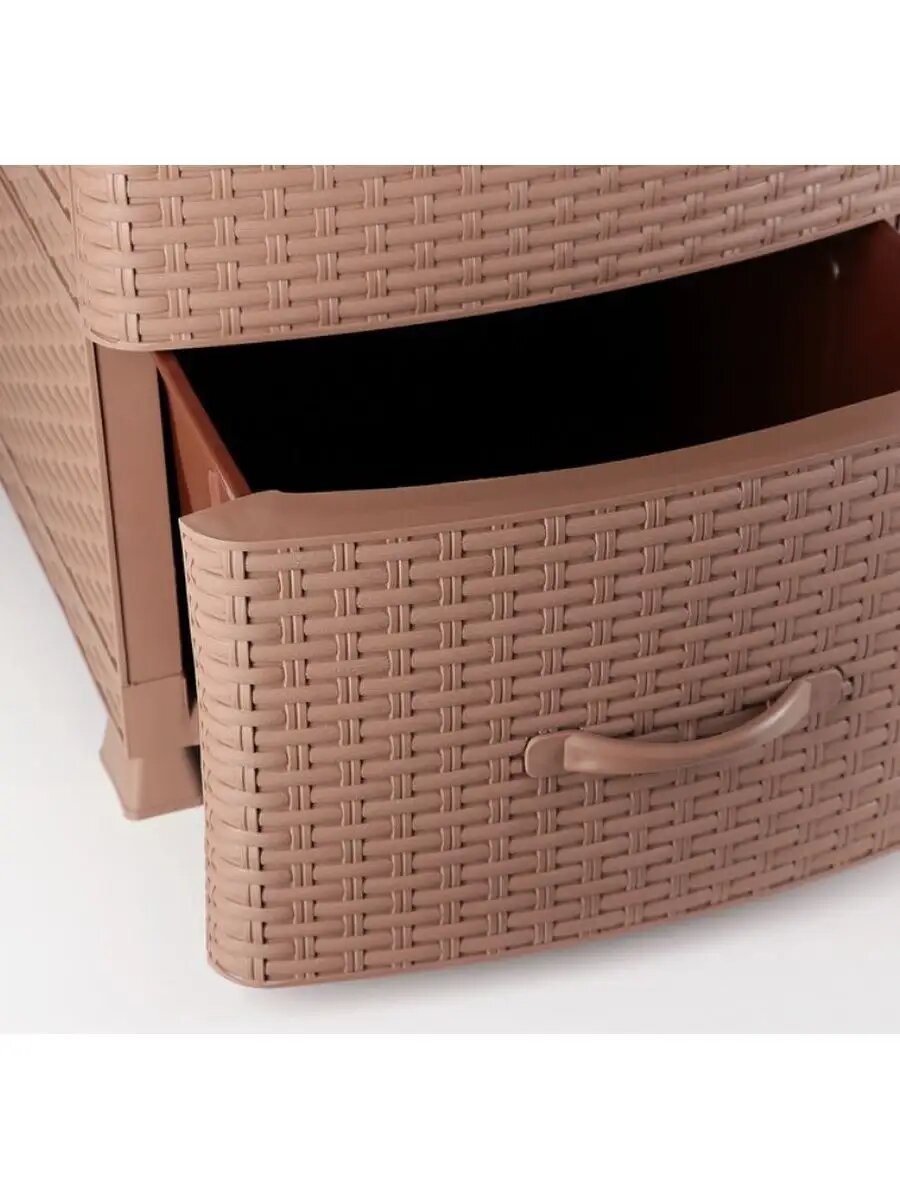 Комод пластиковый Ротанг с 2 ящиками, цвет коричневый / узкая тумба для хранения вещей