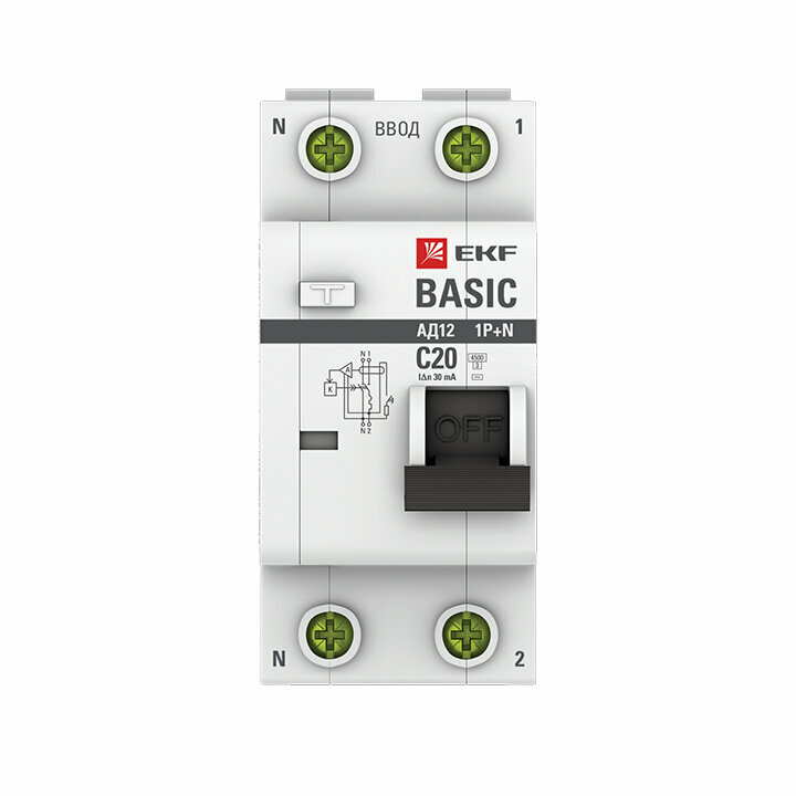 EKF Basic АД-12 Диф. Автомат (C) 1P+N 20А/30мА тип АС 4,5кА , электронный