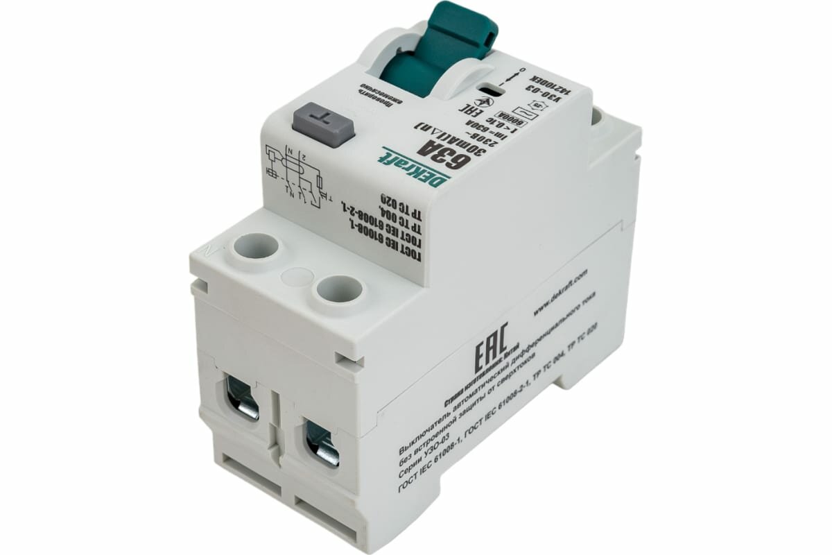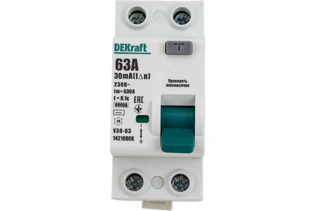 Выключатель дифференциального тока 2P 63А 30мА тип AC 6кА УЗО-03 14210DEK DEKraft интересное: