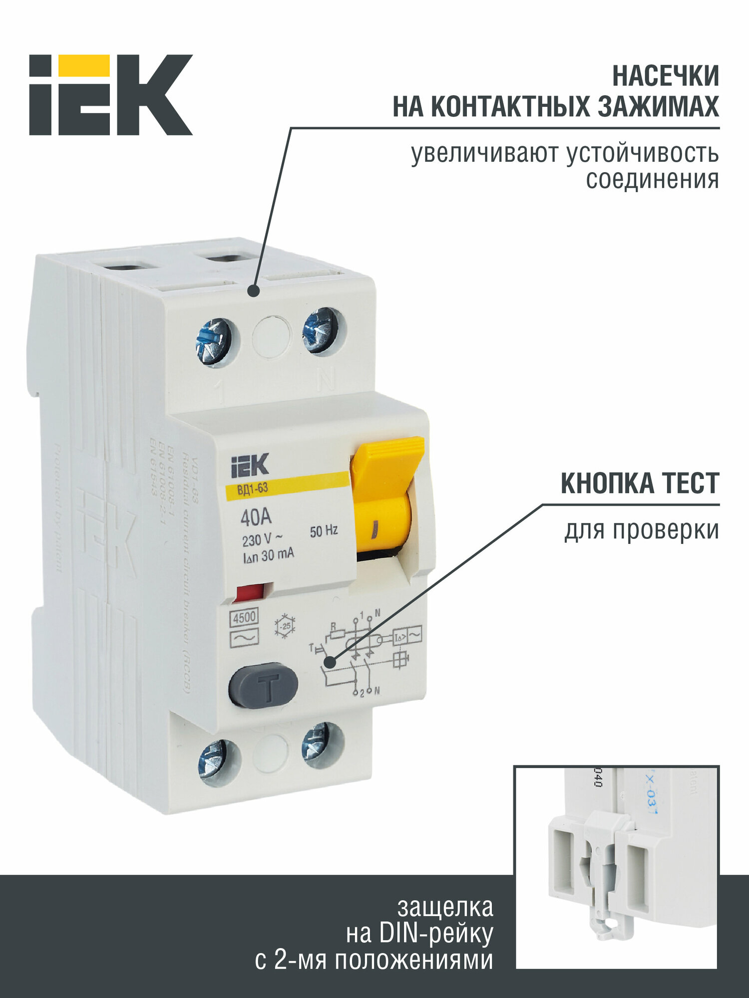 УЗО рейка DIN iEK ВД1-63 2п 40А 30мА 230В