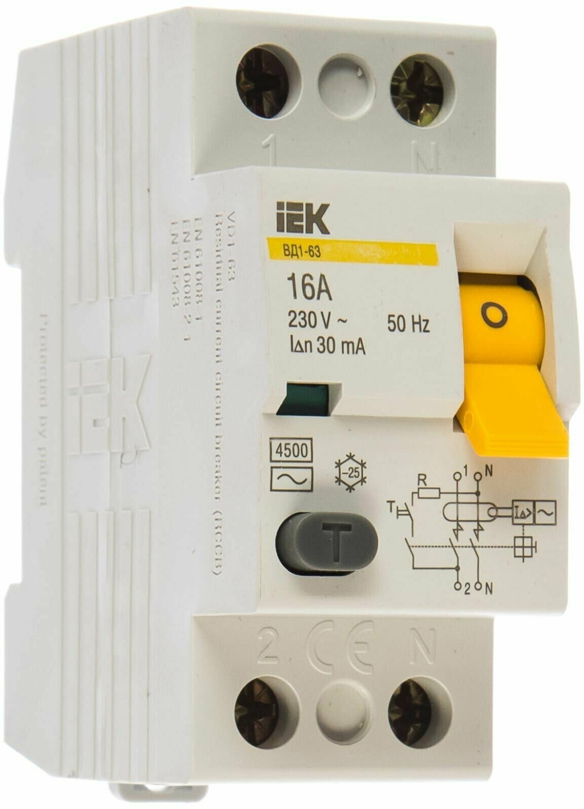 УЗО IEK ВД1-63 (MDV10-2-016-030) 16А 30 мА 2P тип AC 4,5 кА