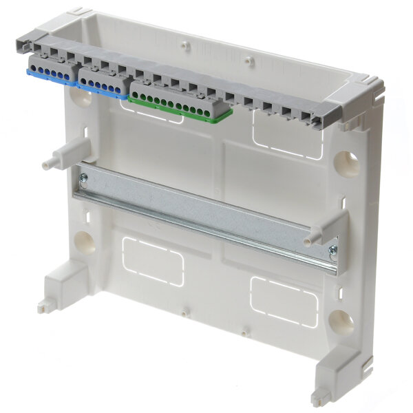В комплекте нулевая шина, и шина заземления. Корпус из прочного пластика,не колется. Внутри есть достаточно места для прокладки проводов. Дин рейка под модули металлическая. |