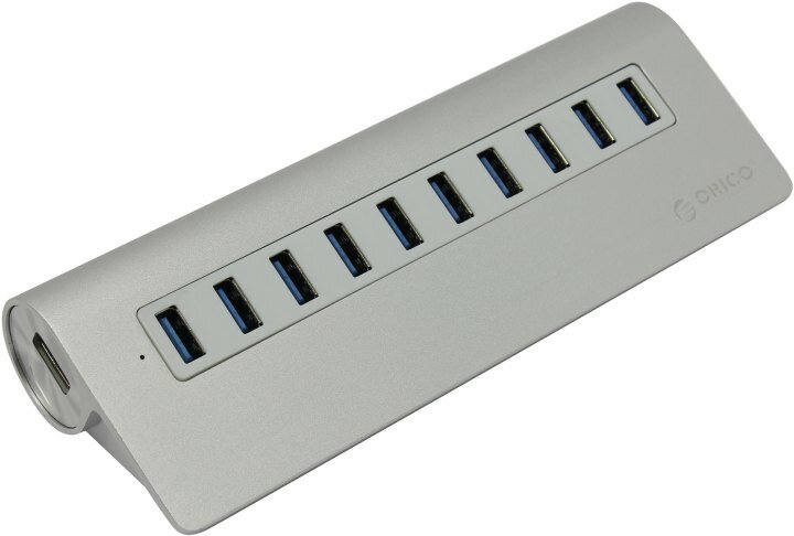 USB-концентратор ORICO M3H10, разъемов: 10, серебристый