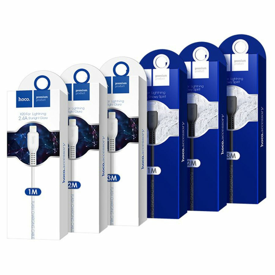 Кабель HOCO USB X20 Flash Lightning 8-pin, 2.4A, 1м, PVC (белый)