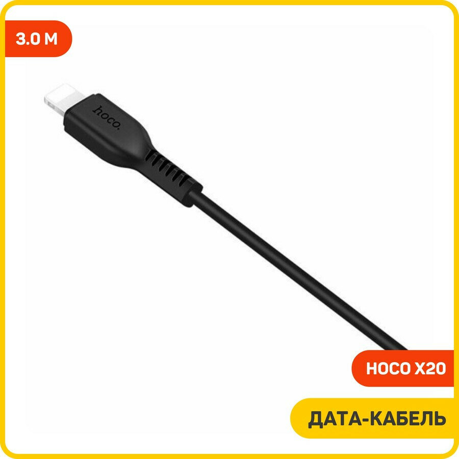 Кабель Hoco X20, Lightning - USB, 2 А, 3 м, PVC оплетка, чёрный