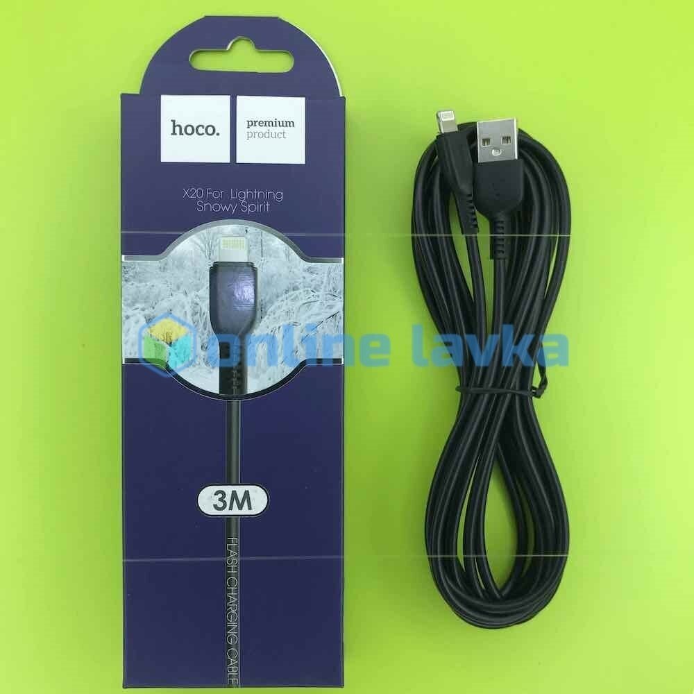 Кабель Hoco X20 Flash USB - Lightning, 3 м, черный