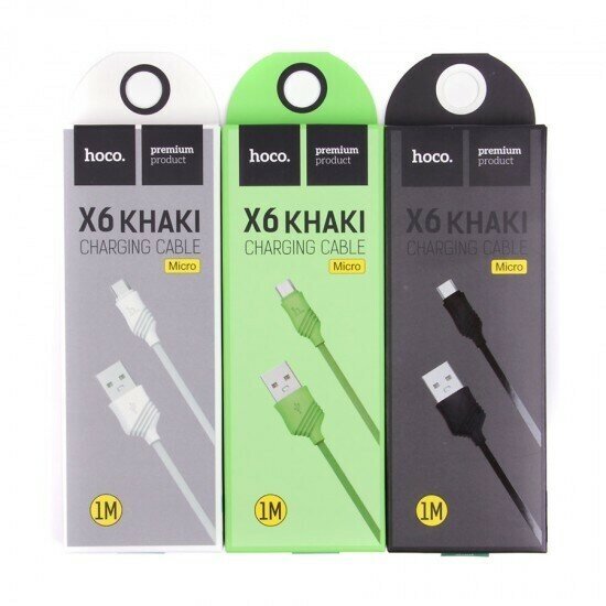 Дата-кабель Hoco X6 Khaki USB-MicroUSB, 1 м, белый