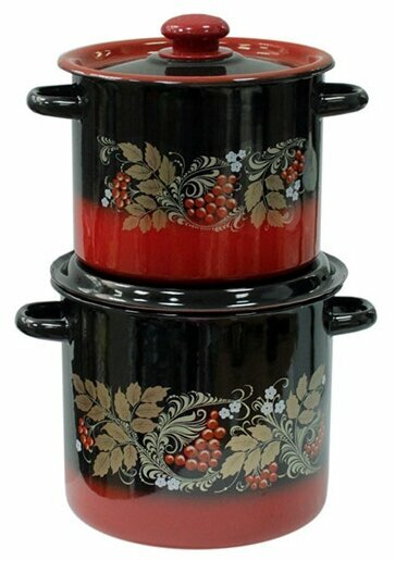 Набор эмал.посуды 2пр 20 красно-черная Рябинка (к.цил.3,5л,5,5л) N20L05