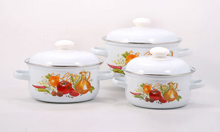 Набор эмалированных кастрюль 1,45л,2,9л,4,3л Фруктовая фантазия Лысьвенские эмали