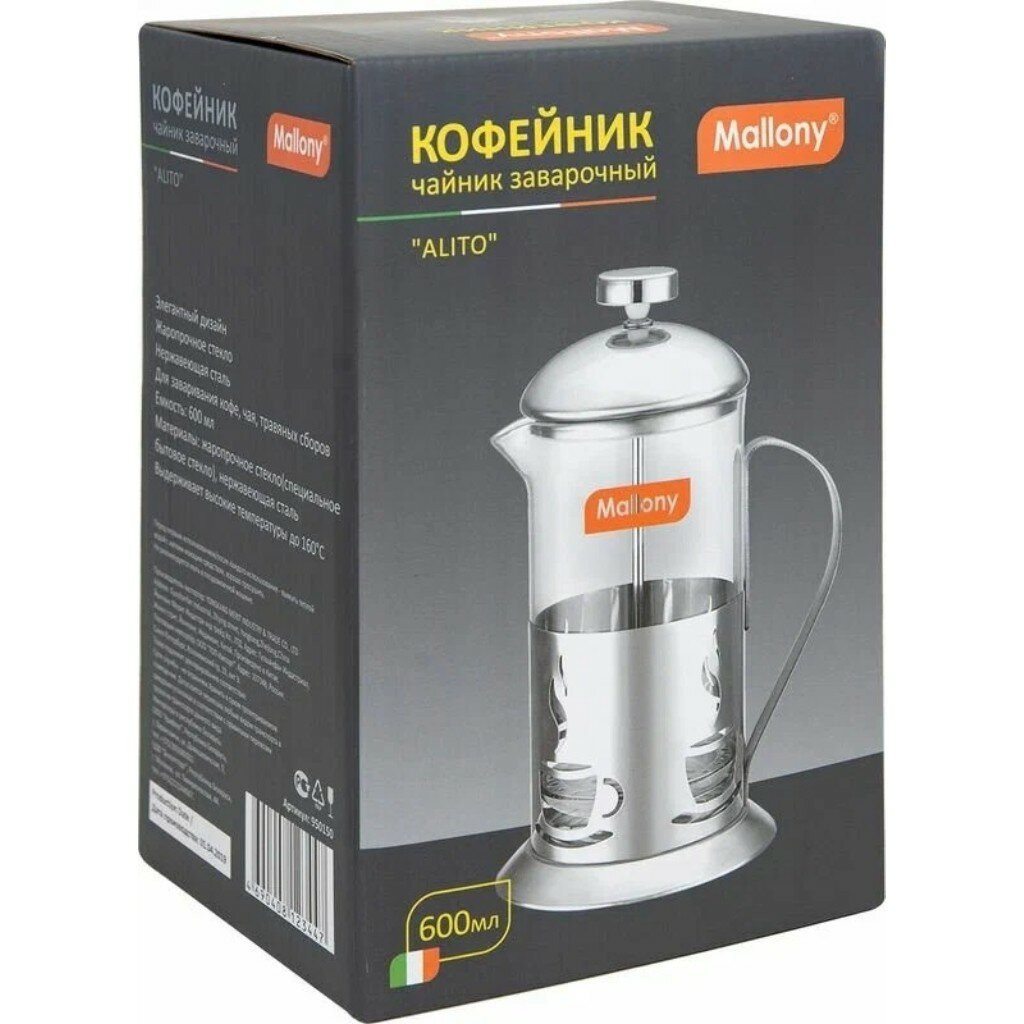 Чайник/кофейник (френч-пресс) ALITO, 600мл, нерж сталь/стекло 950150 Mallony