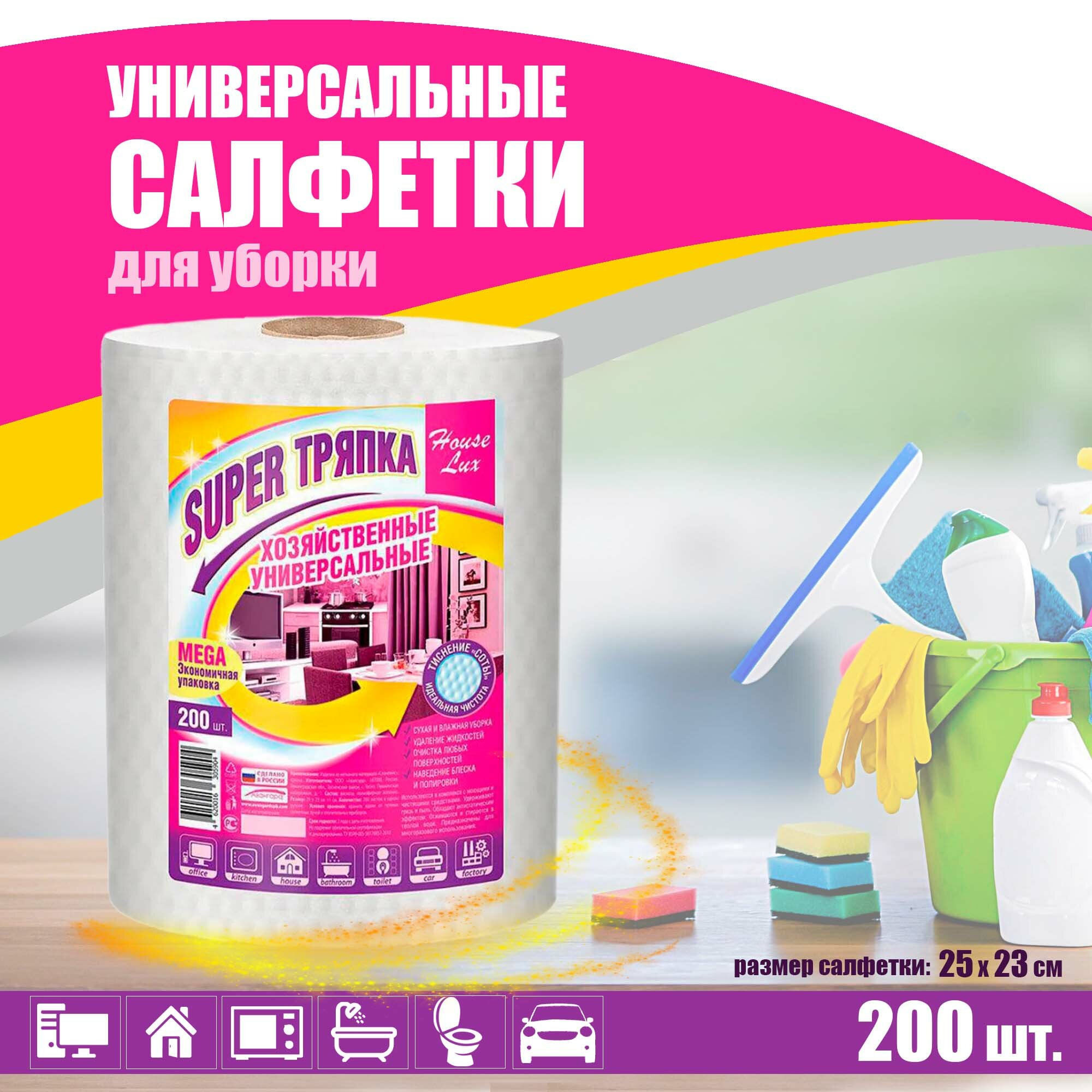 Тряпка д/уборки HOUSE LUX Super тряпка 200шт 25*23см/рулон