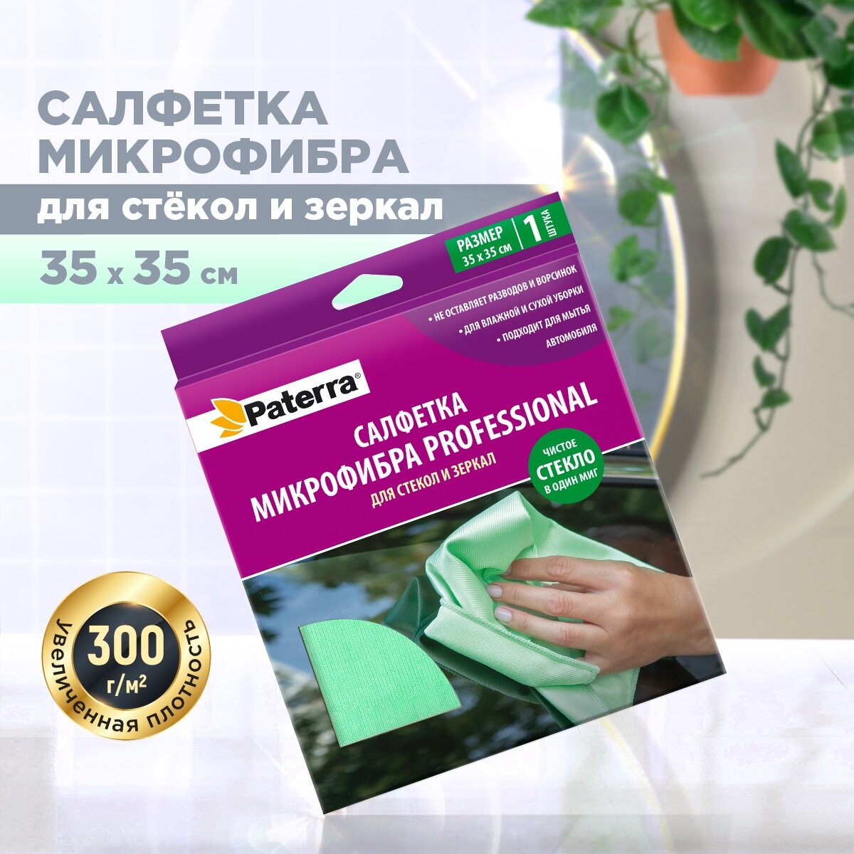Салфетка микрофибра PROFESSIONAL, для стекол и зеркал, 35 * 35 см, в картонной упаковке, PATERRA
