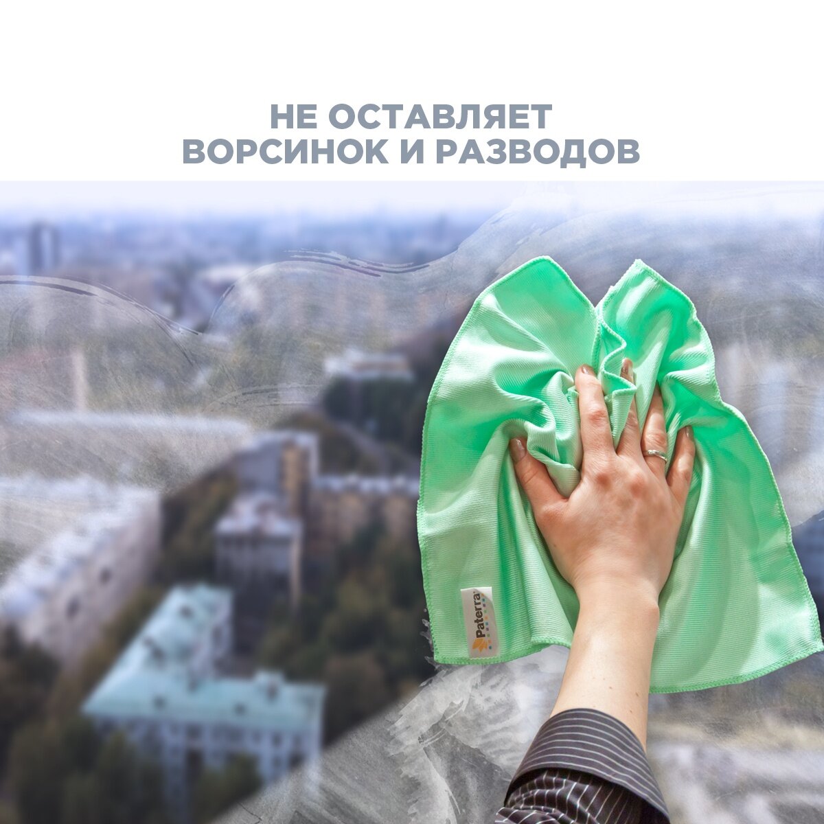 Салфетка для стекол И зеркал микрофибра 35*35 PROFESSIONAL спец.цена PATERRA