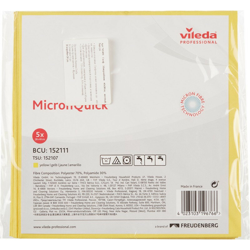 Салфетка Vileda Professional МикронКвик, желтый, 5 шт.