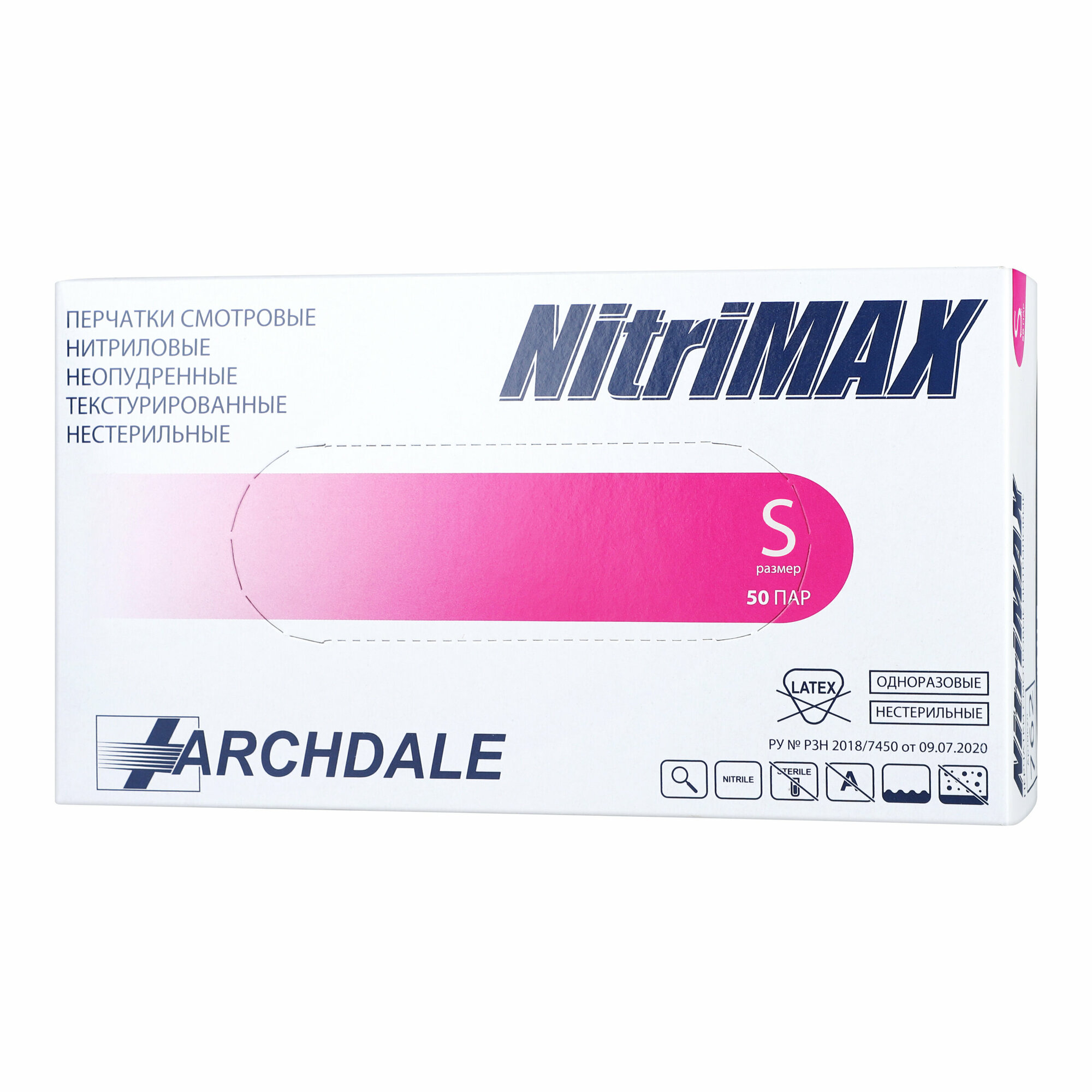Archdale, перчатки для маникюриста нитриловые Nitrimax (белые, S), 50 пар