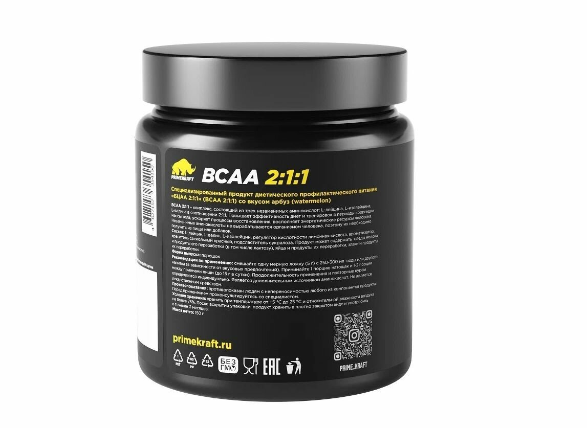 Купить Аминокислоты PRIMEKRAFT BCAA 2:1:1 (БЦАА) со вкусом Арбуз, 150 г