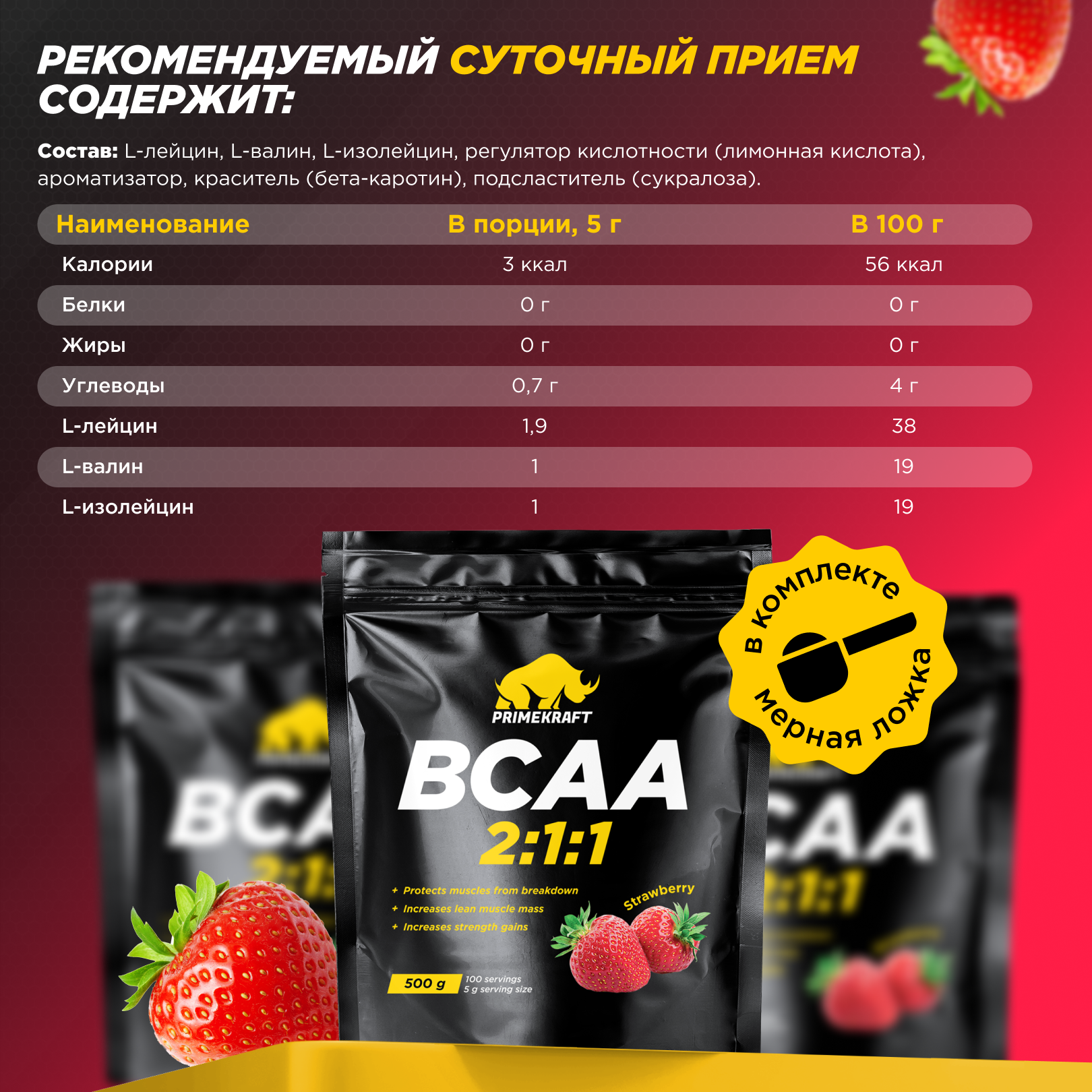 Купить Аминокислоты PRIMEKRAFT BCAA 2:1:1 (БЦАА), Клубника, 500 г / 100 порций