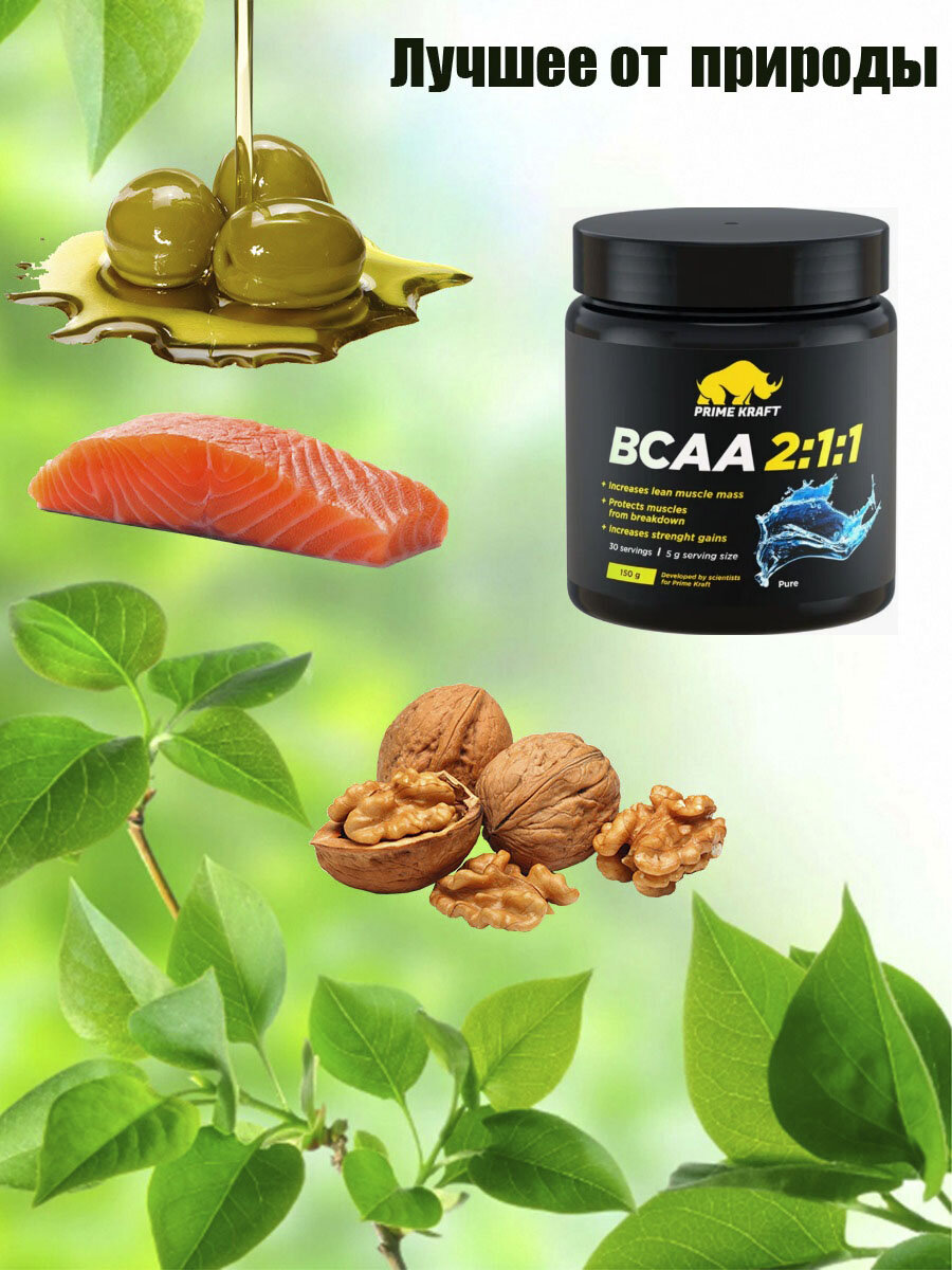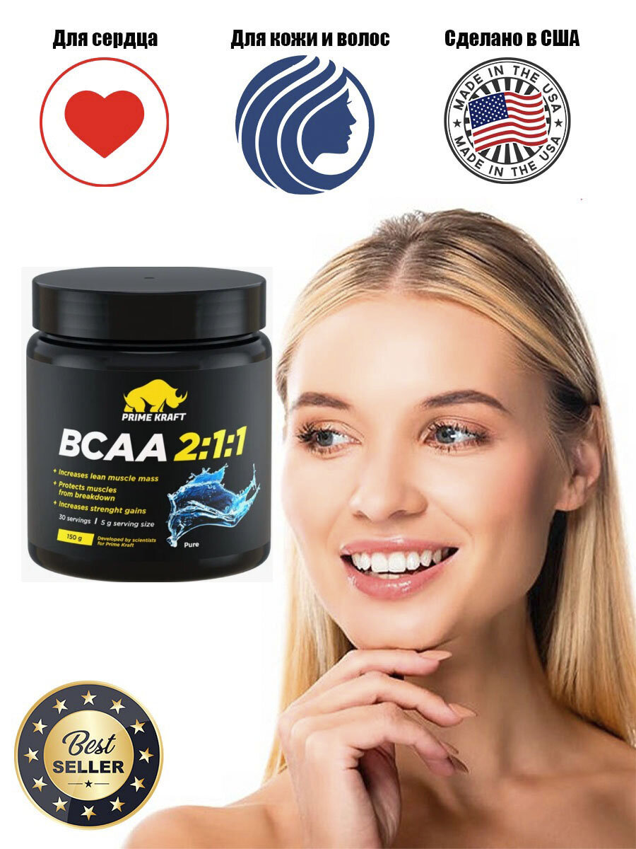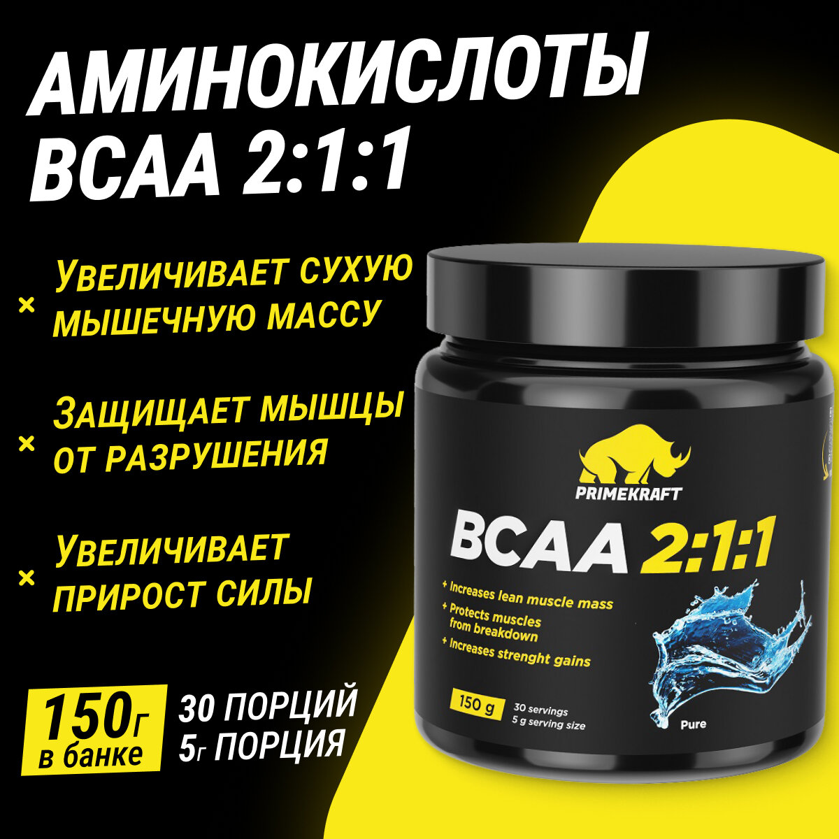 BCAA спорт питание порошок 150 гр, PrimeKraft BCAA 2:1:1 , чистый (pure)