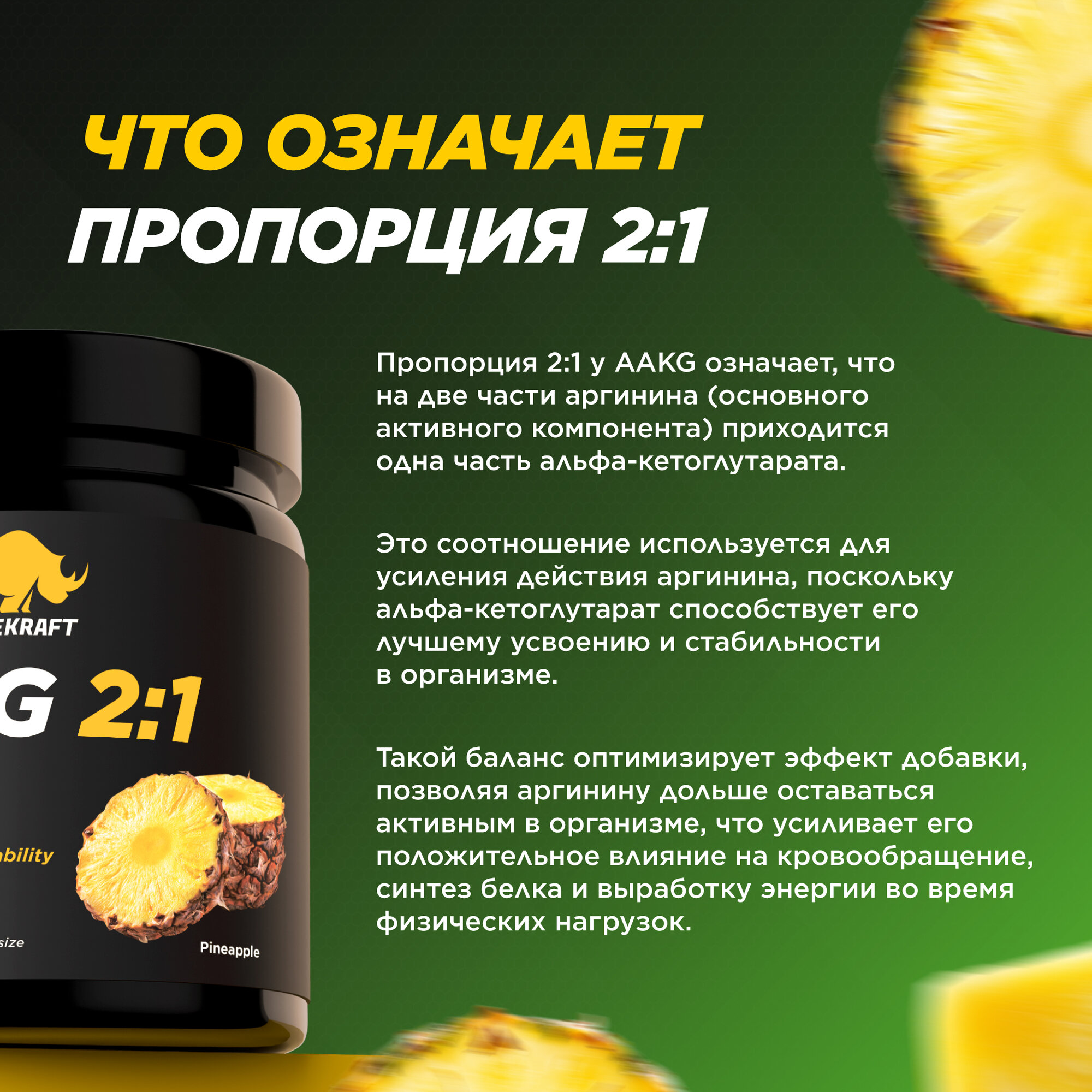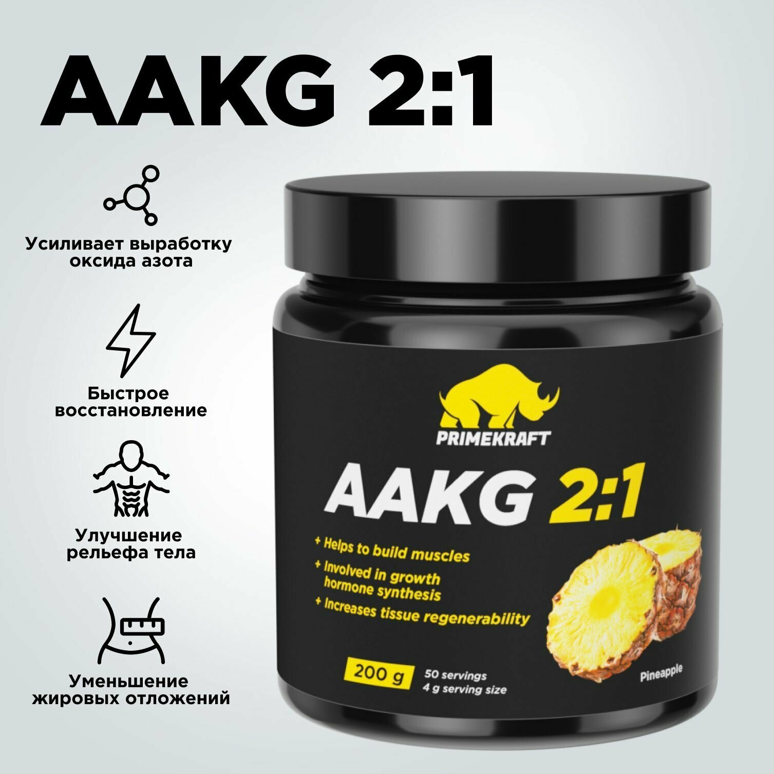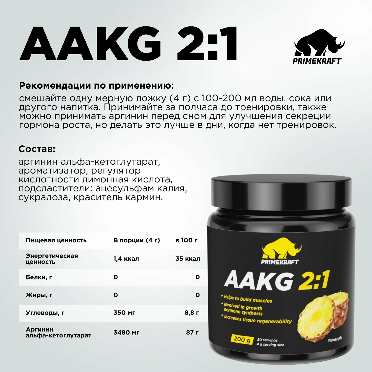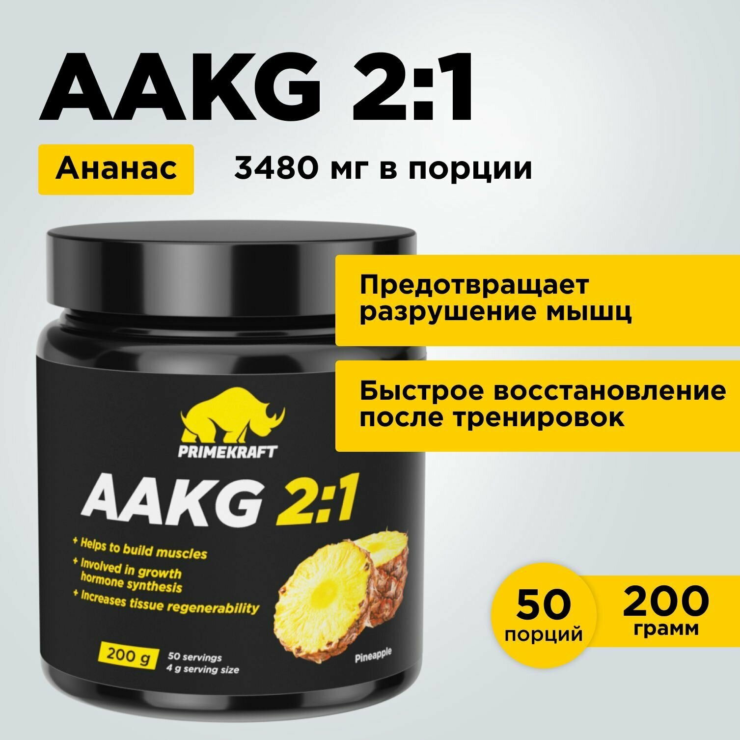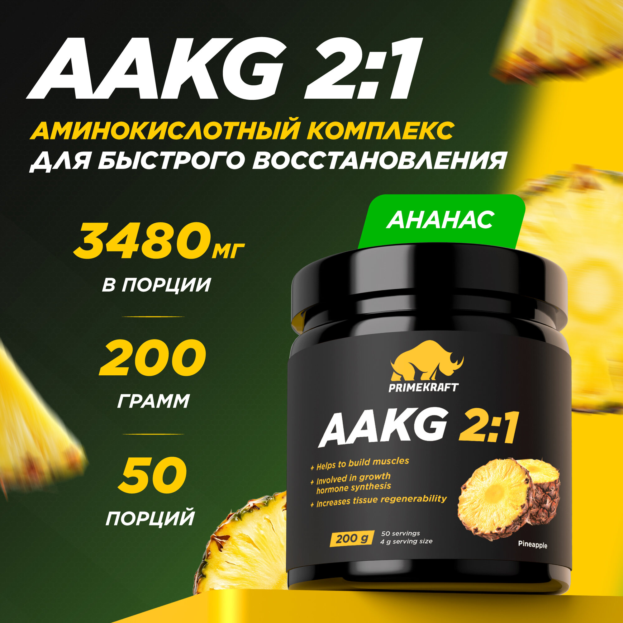 Купить Аминокислоты аргинин PRIMEKRAFT AAKG 2:1 (аакг / АКГ) Ананас, 200 г / 50 порций