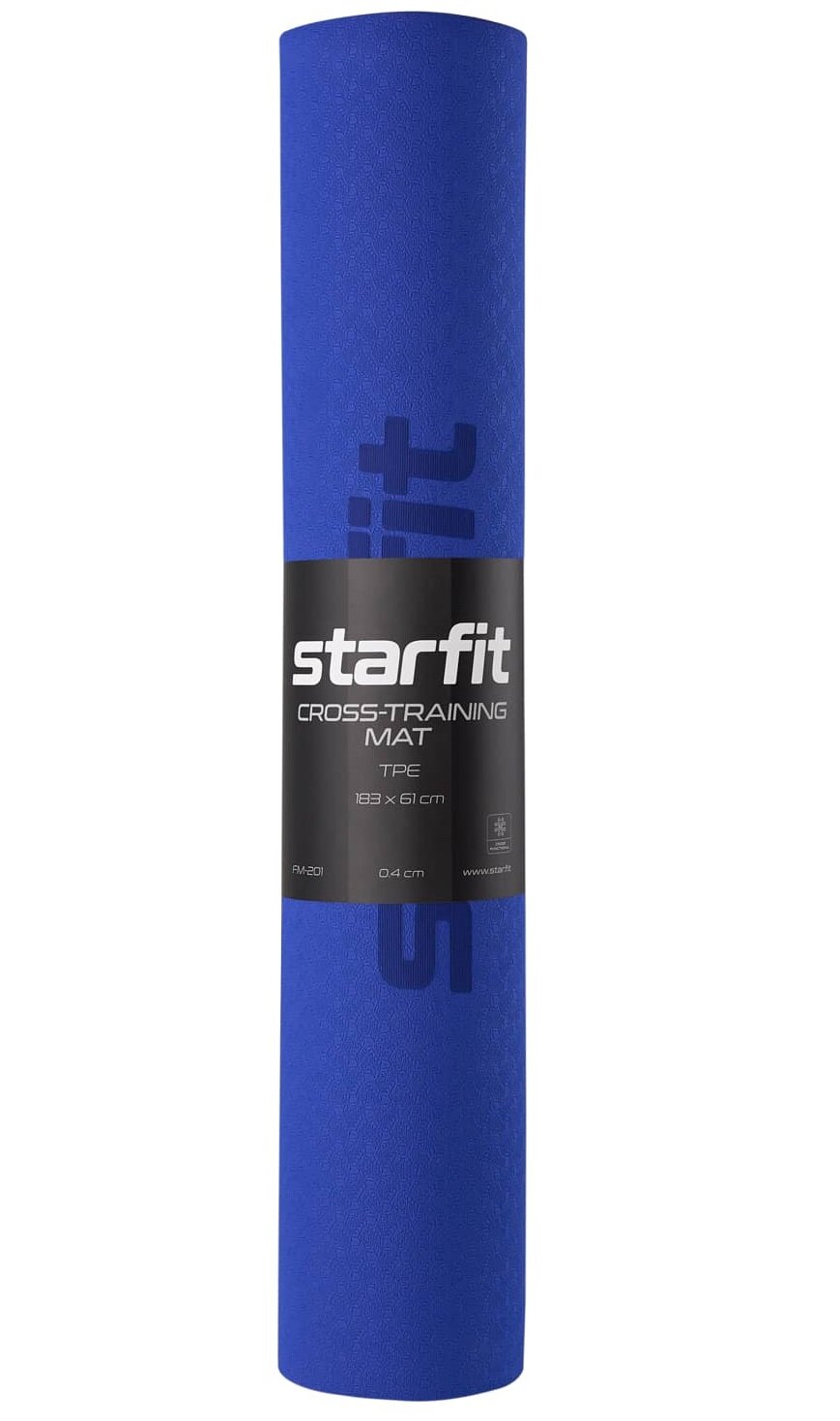 Коврик для йоги и фитнеса STARFIT FM-201 TPE, 0,4 см, 183x61 см, темно-синий/синий