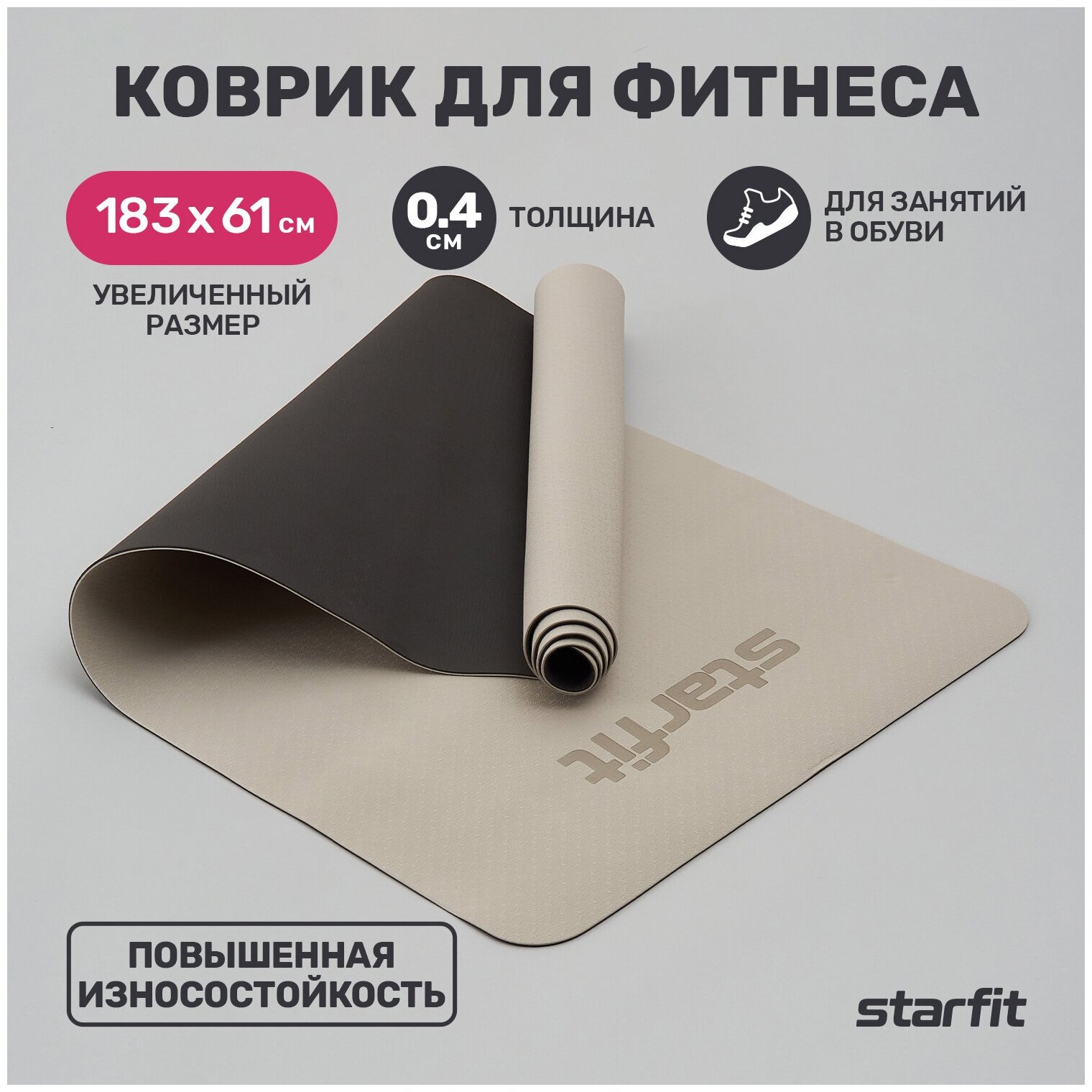 Купить Коврик для йоги STARFIT FM-201 TPE, 183x61х0,4 см черный/серый