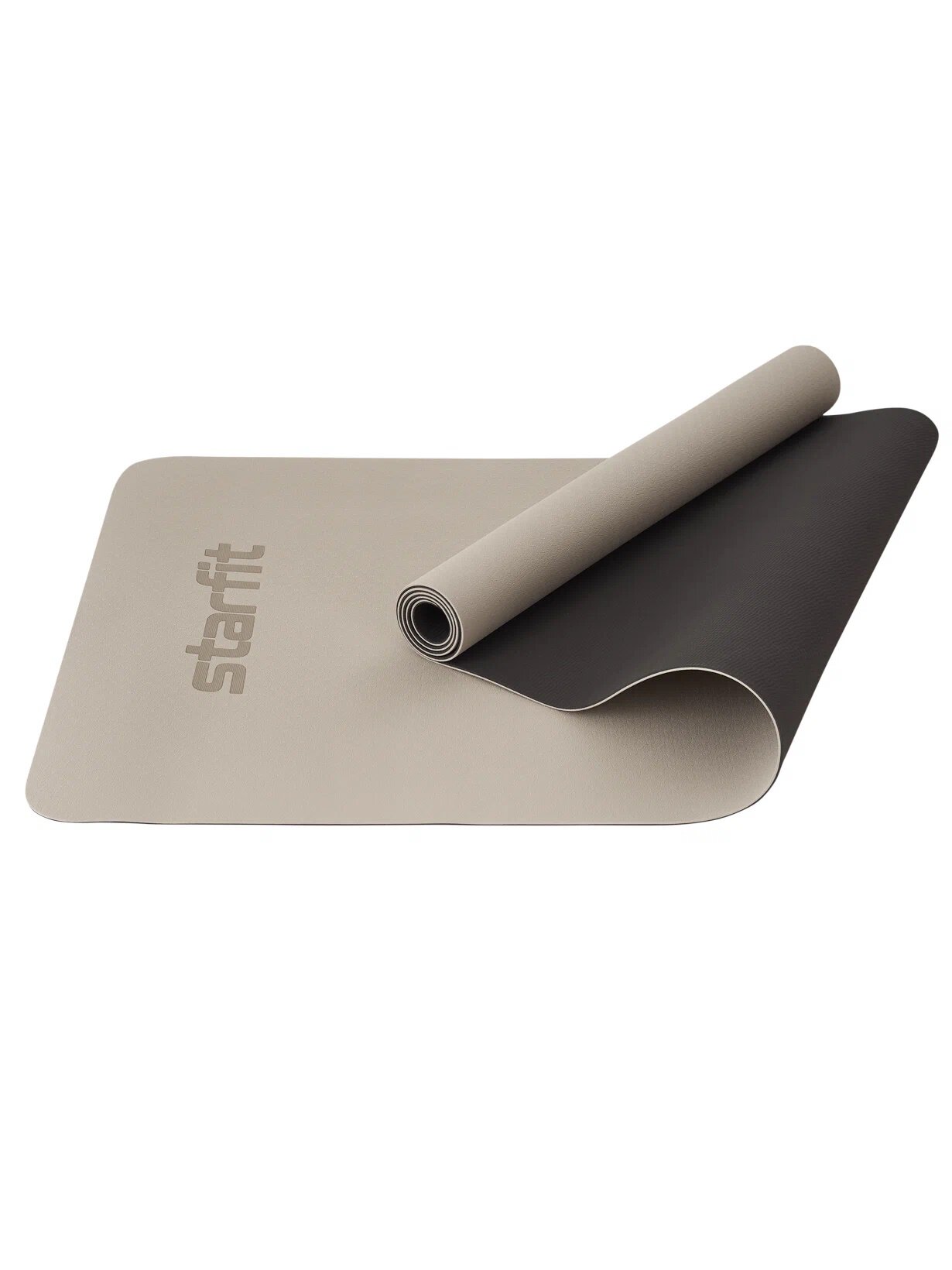 Коврик для йоги и фитнеса STARFIT FM-201 TPE, 0,4 см, 183x61 см, черный/серый