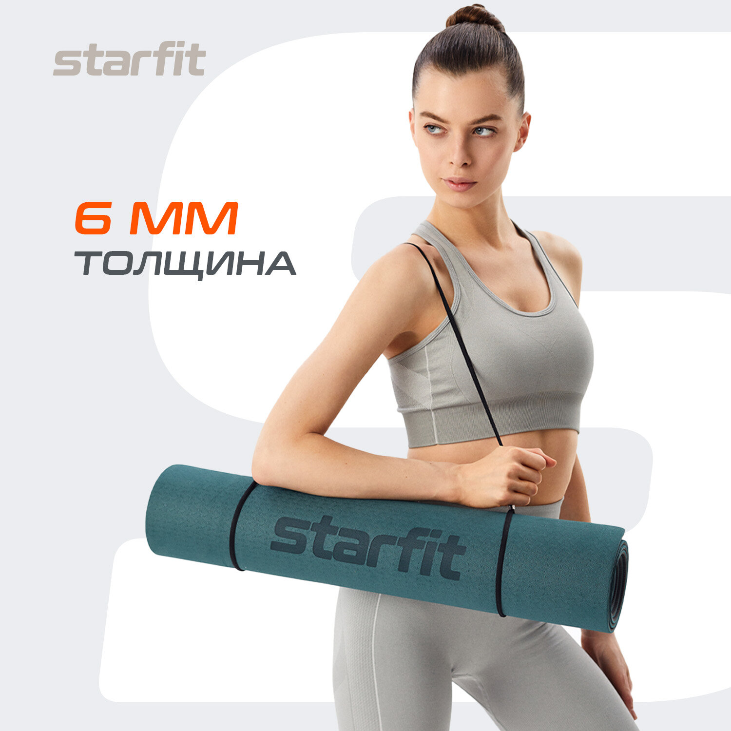 Коврик для йоги и фитнеса STARFIT FM-201 TPE, 0,6 см, 183x61 см, мятный/серый