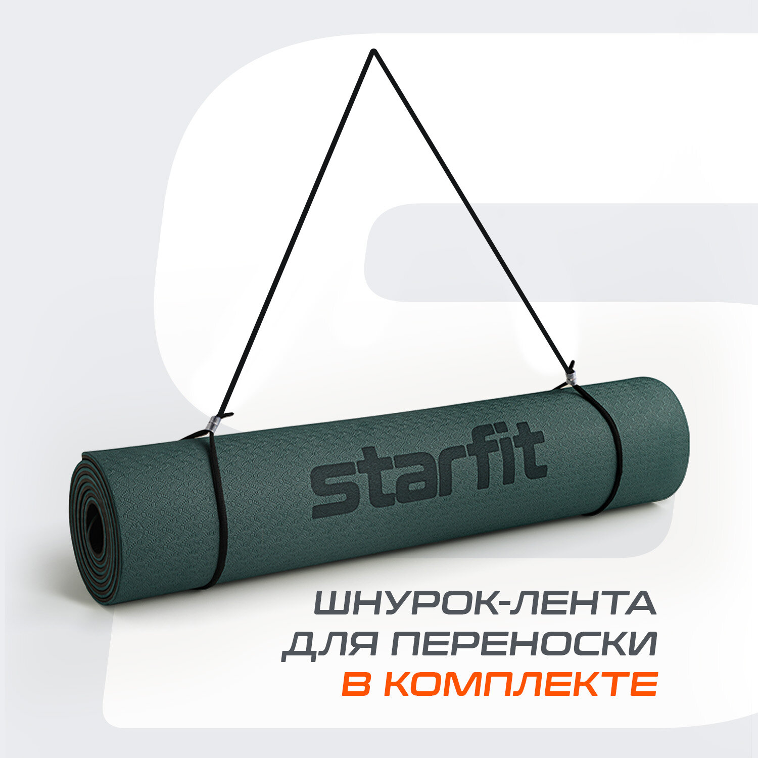 Коврик для йоги и фитнеса STARFIT FM-201, TPE, 183x61x0,4 см, оранжевый/зеленый с шнурком для переноски