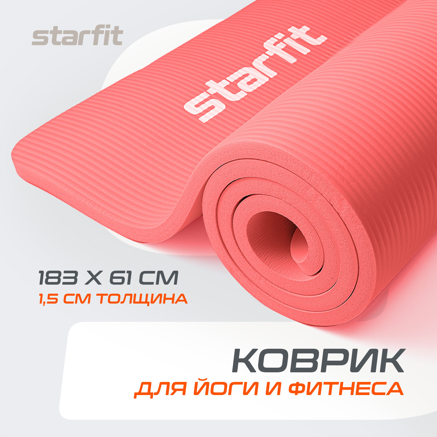 Коврик для йоги и фитнеса STARFIT FM-301 NBR, 1,5 см, 183x61 см, коралловый