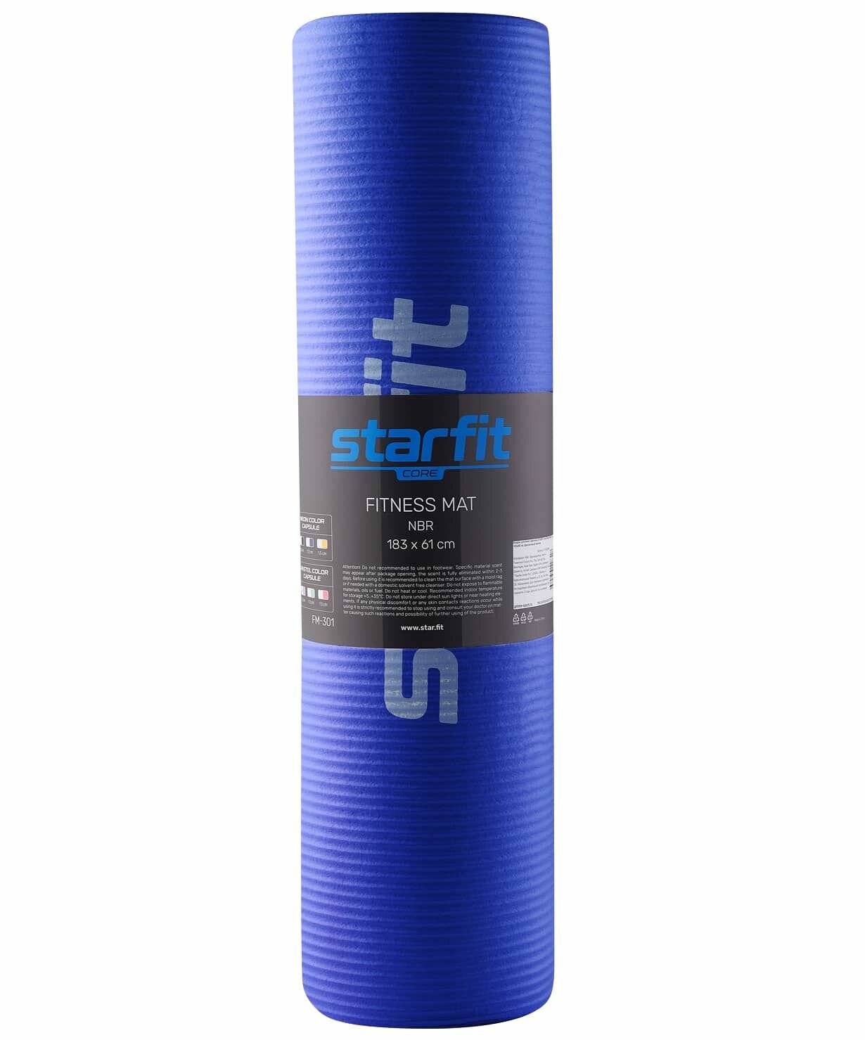 Коврик для йоги и фитнеса STARFIT FM-301 NBR, 1,2 см, 183x58 см, темно-синий